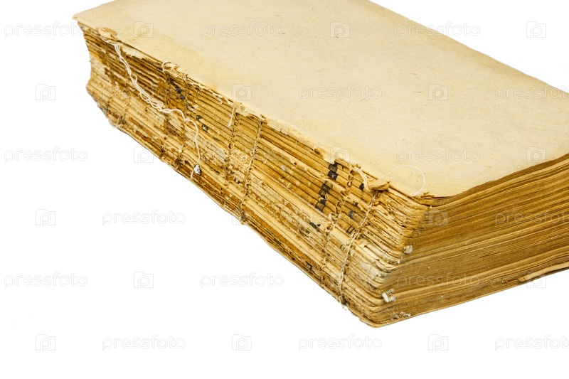 Старая книга без обложки на белом фоне