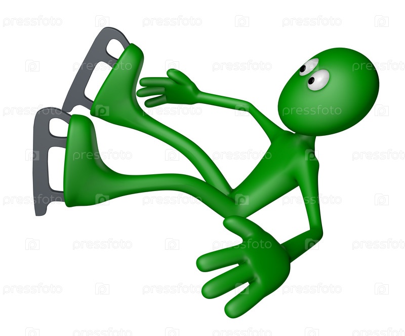 Падающий зеленый человек на коньках. 3D иллюстрация