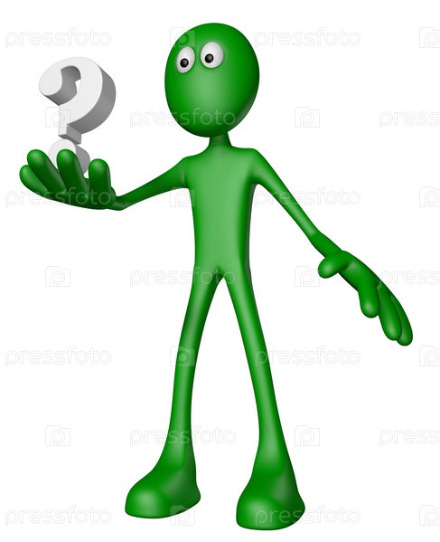 Зеленый человечек и вопросительный знак. 3D иллюстрация