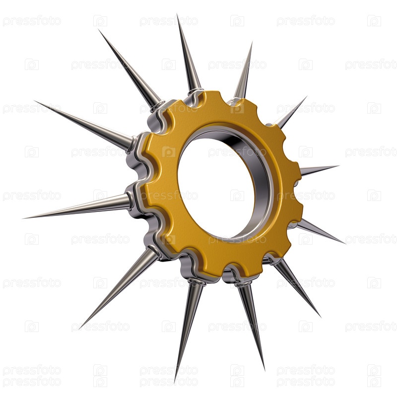 Зубное колесо с шипами на белом фоне. 3d иллюстрация