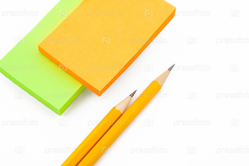 Канцелярские товары. Стикеры и два желтых карандаша
