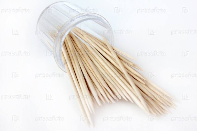 Небольшое количество деревянных зубочисток в пластиковой упаковке