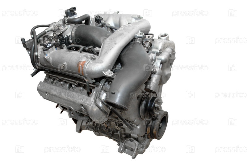 Автомобильный двигатель на белом фоне