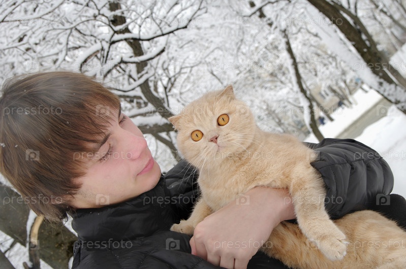 Мужчина с шотландским короткошерстным котом