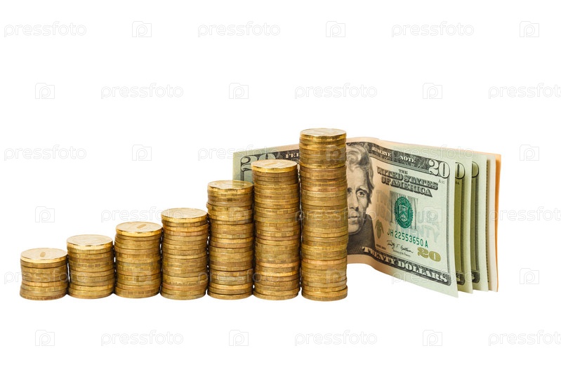 Долларовые банкноты и монеты