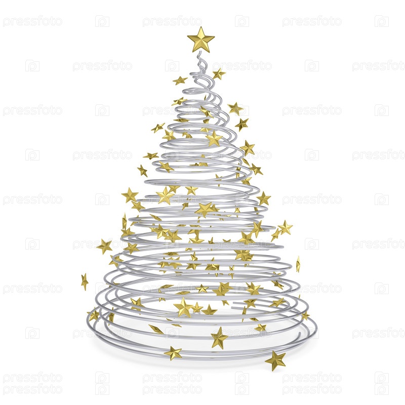 Рождественская 3D елка из металлических спиралей и золотых звезд