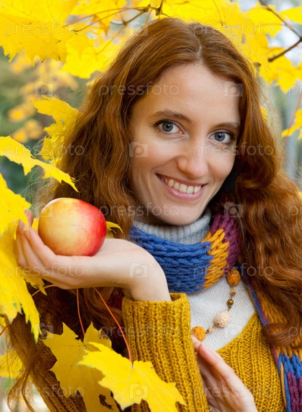 Молодая женщина гуляет в пожелтевшем кленовом осеннем лесу