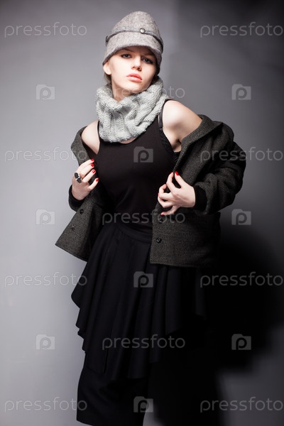 Ретро. Изящная женщина в пальто и шапке - романтический стиль