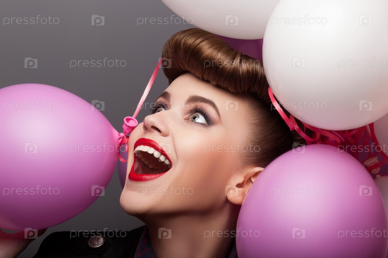 Восторг. Счастливая девушка с красочными воздушными шарами