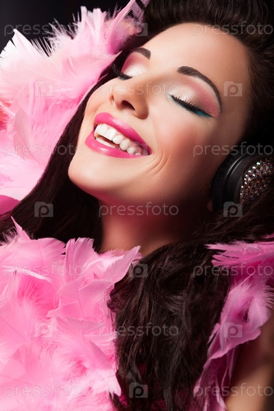 Веселая красивая девушка с розовым боа из перьев