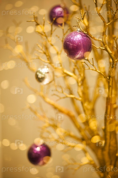 Сверкающие золотые рождественские украшения на фоне с эффектом боке