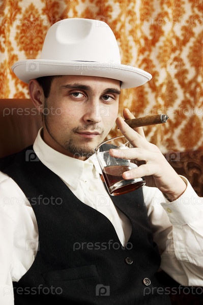 Мужчина пьет виски