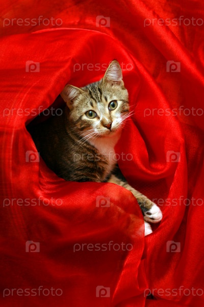 Кот на красном фоне
