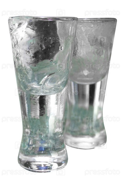 Две замерзшие стопки на белом фоне