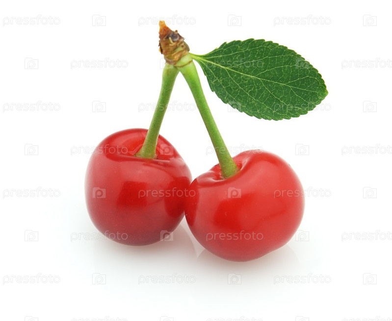 Вишня крупным планом на белом фоне