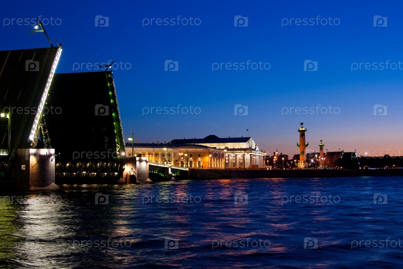 Разведенный Дворцовый мост во время белых ночей, Санкт-Петербург