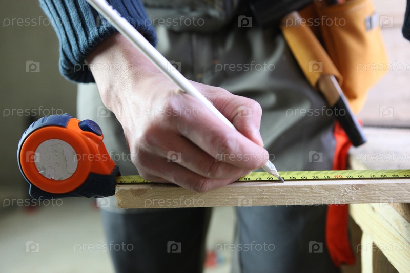 Рлотник делает отметки на куске дерева
