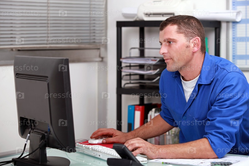 Строитель работает в офисе