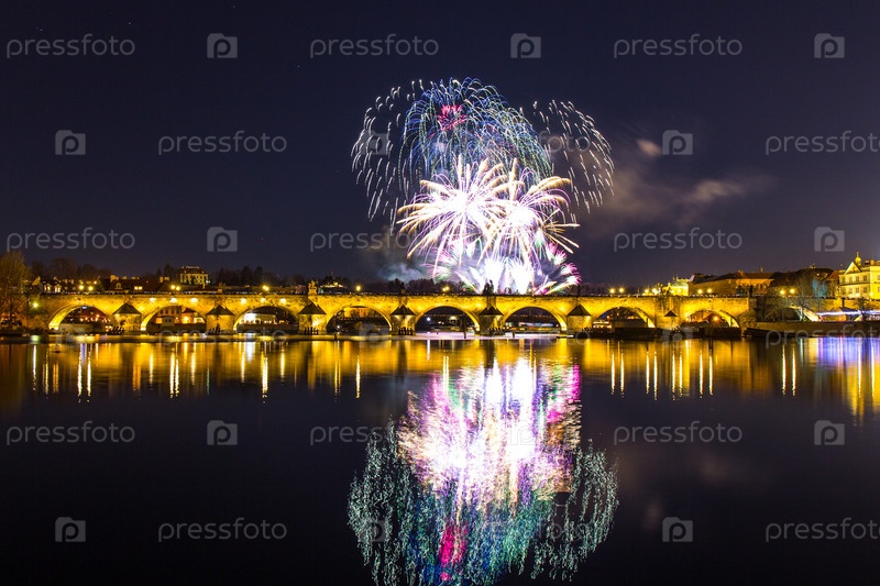 Красочный фейерверк в Праге. Чешская Республика