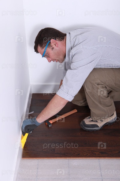 Мужчина укладывает ламинат