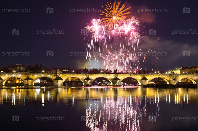 Красочный фейерверк в Праге. Чешская Республика