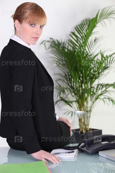 Бизнес-леди сидит на столе