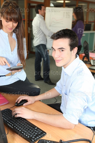 Молодые люди работают в офисе