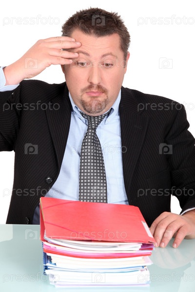 Бизнесмен со стопкой файлов
