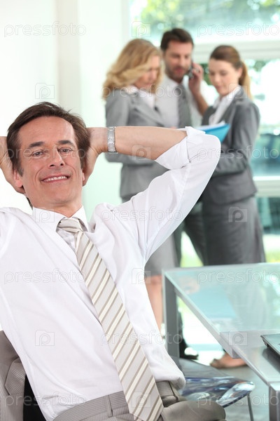 Бизнесмен сидит, откинувшись назад