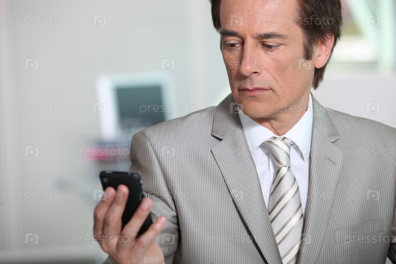 Бизнесмен смотрит на телефон