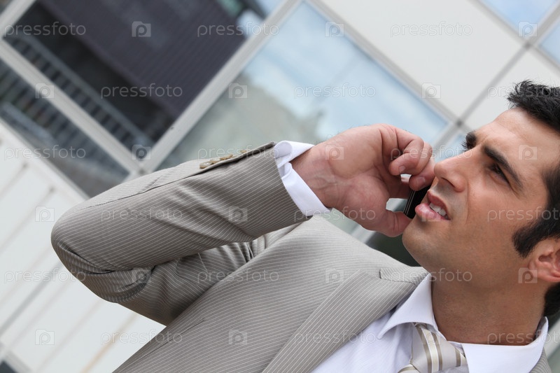 Молодой предприниматель говорит по телефону