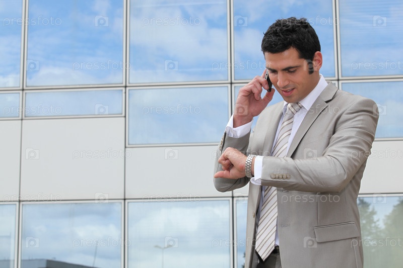Бизнесмен смотрит на часы