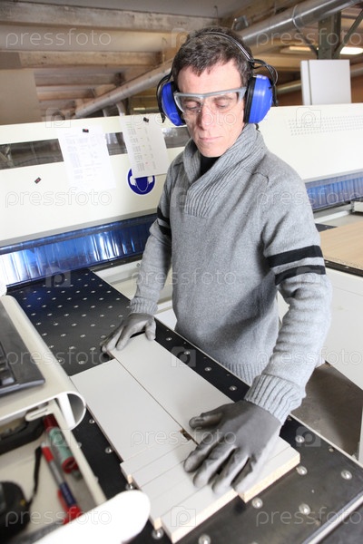 Мужчина в наушниках на фабрике