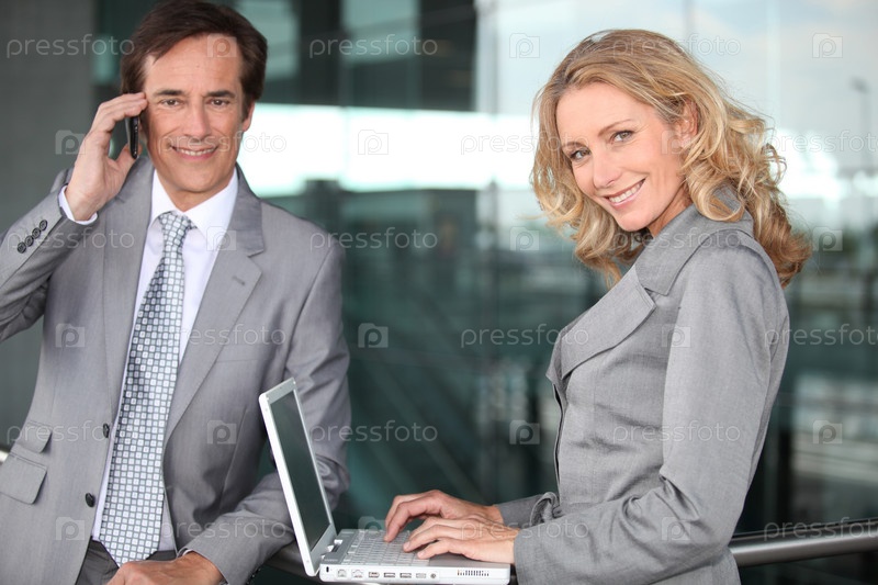 Двое руководителей, работающих за пределами офисного здания