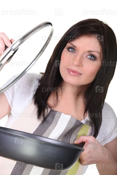 Женщина закрывает кастрюлю