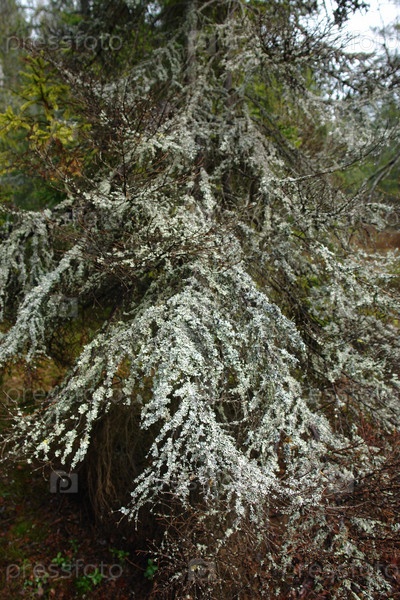 Ветки ели покрытые лишайником