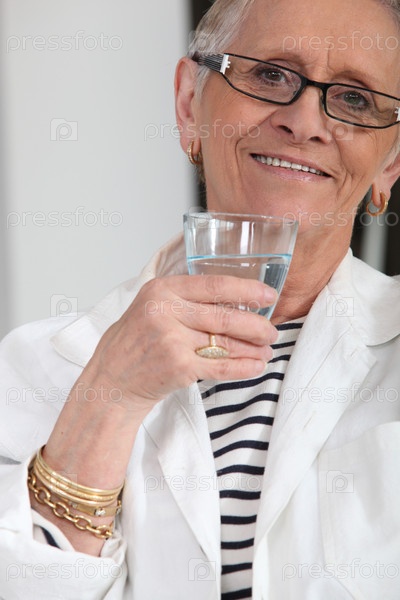 Пожилая женщина пьет воду