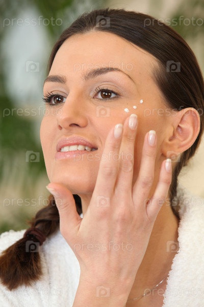 Блондинка наносит увлажняющий крем
