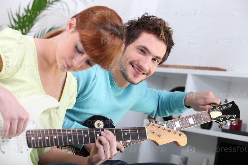 Предодаватель игры на гитаре и его ученик