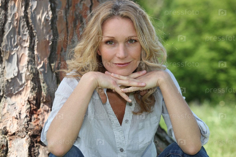 Женщина сидит у дерева