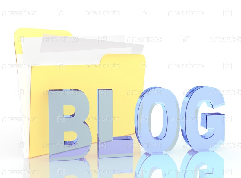 Слово 'BLOG' на фоне папки с документами