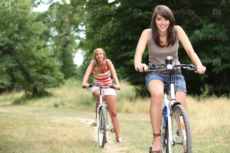 Девушки едут на велосипедах