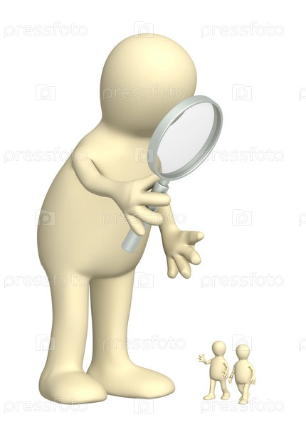 Большой человечек, разглядывающий в лупу маленьких человечков