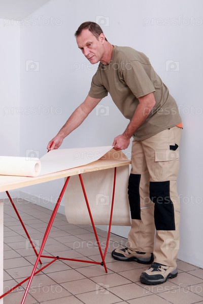 Мужчина держит обои
