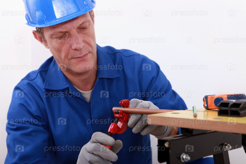 Сантехник использует труборез для трубы