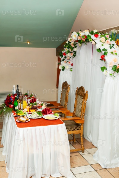 Накрытый стол для невесты и жениха