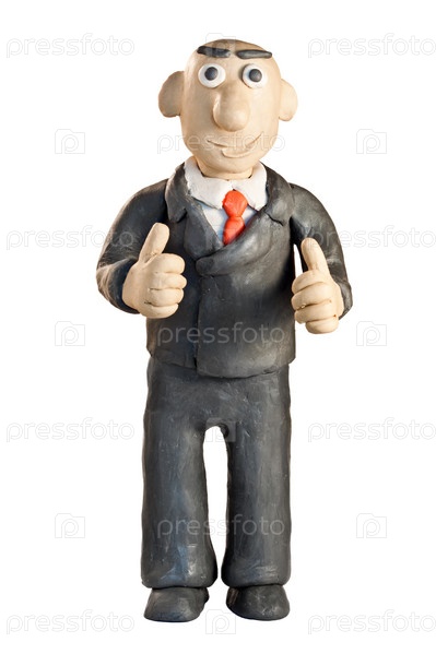 Пластилиновый бизнесмен в костюме на белом