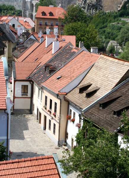 Средневековые улицы с красными крышами домов в Чески-Крумлов