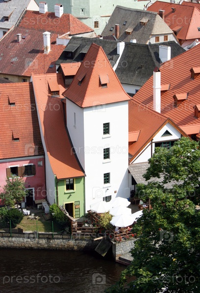Черепичные крыши средневековых домов в Чески-Крумлов