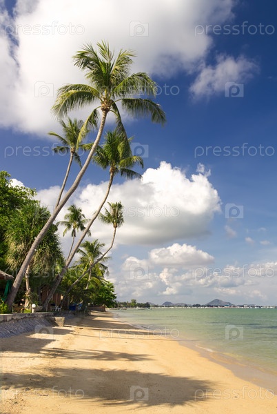 Тропический пляж с кокосовыми пальмами